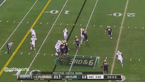 Állítólag a fehér ember nem tud ugrani, vagy mégis? A január elsejei Fieszta Bowl-on a Baylor egyetem quarterbackje, Bryce Petty (191 cm, 105kg) hihetetlen ugrással szerzett 6 pontot. Nem tudom, az edző mit szólt hozzá, a quarterback feladata minden, csak az nem, hogy összetörje magát.